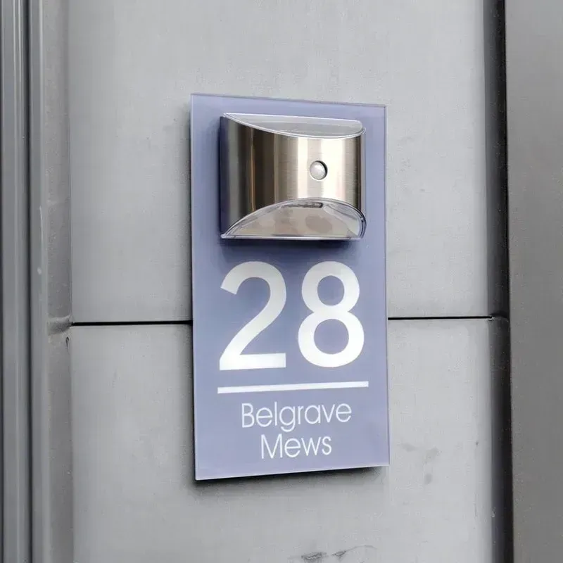 Hergestellt AUS robustem 5mm dickem matten Acryl, erzeugt Das schlanke Design einen festelnden schwebeeffekt MIT versteckten kitchen. Diese Tafel hebt nicht nur Die außenseite ihres hauses hervor, sondern dient Auch ALS personalisierter leuchtturm.